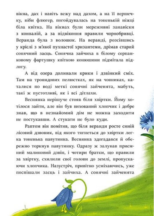 Чи знаєте ви, що крім звичайних сонячних зайчиків існують ще сонячні та місячні? А що в них є свої казкові країни? Мабуть, ви навіть не уявляєте, як туди потрапити та що зробити, щоб потоваришувати з ними. Якщо ні, тоді швидше відкривайте книжку та знайомтесь з добрим та веселим хлопчиком Веснянкою, проведе вас казковою Країною Сонячних Зайчиків, познайомить з її мешканцями та розкаже, як він переміг жахливого пана Морока та його посіпак. Але будьте готові до того, що на цьому пригоди не закінчаться, і злодій повернеться знов, проте перемагатимуть його нові герої з Країни Сонячних Зайчиків.